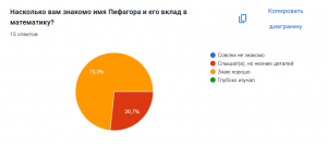Анализ результатов опроса показал, что 73.5% опрошенных хорошо знакомы с именем Пифагора: