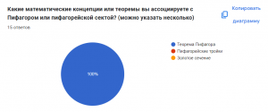 Все 15 участников опроса ассоциируют Пифагора или пифагорейскую секту с Теоремой Пифагора
