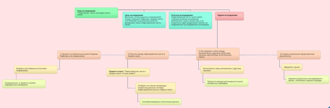 Цель исследования: выяснить, в чем сущность взаимосвязи между теоремой Пифагора, теорией чисел и их влияние на различные области, раскрывая тайны пифагорейской секты чисел.