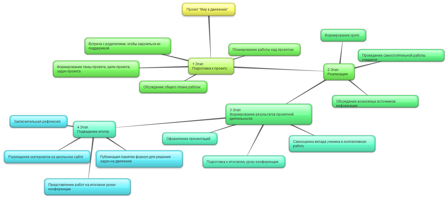 Описание проекта: Проект ориентирован на учеников 5 класса. Решение задач на движение способствует формированию у учеников полноценных знаний, определенных программой и является важной составляющей курса математики. Класс делится на 3 группы для практического и теоретического изучения данной темы. Учитель разделяет учащихся на команды путем жеребьевки. В результате учащиеся представляют свою работу на итоговом уроке-конференции. Полученные материалы публикуются на сайте школы, создается памятка формул для решения задач на движение, проводится рефлексия проделанной работы.