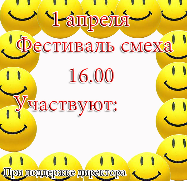 1 апреля пройдет конкурс между 7-9 классами, к этому времени нужно предоставить выступление на 5 минут (Любое выступление в юмористическом жанре). Награждение победителей и выявление номинаций